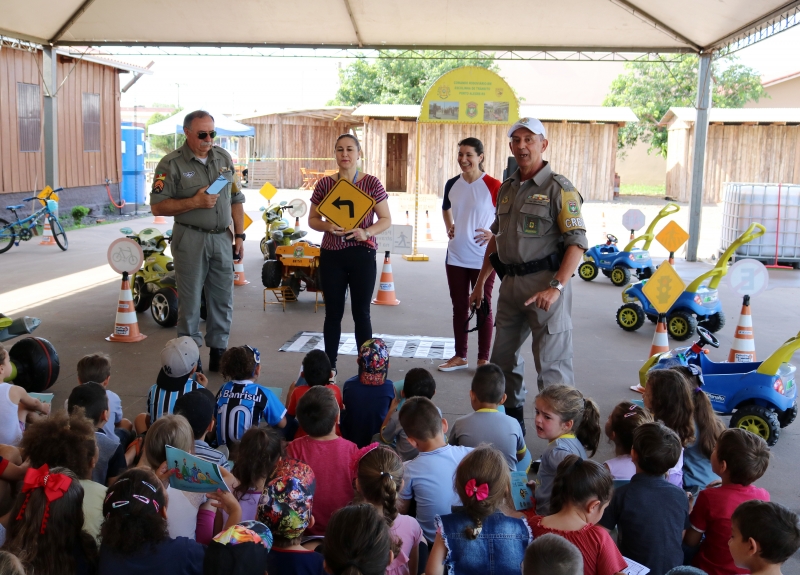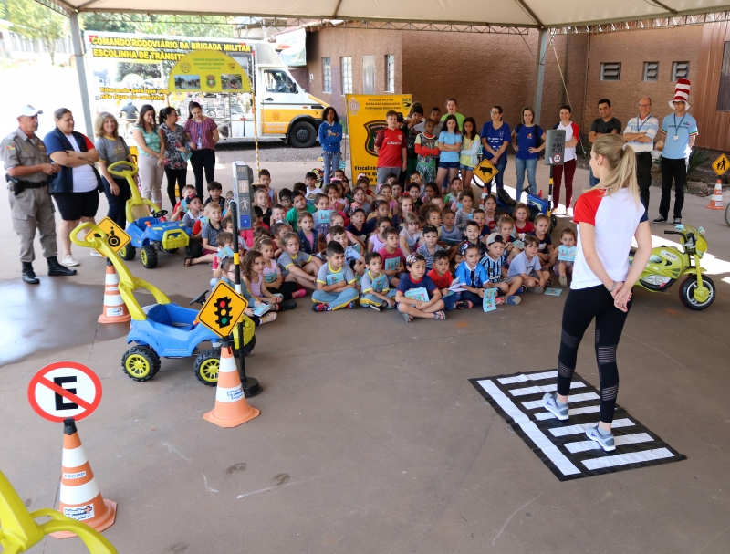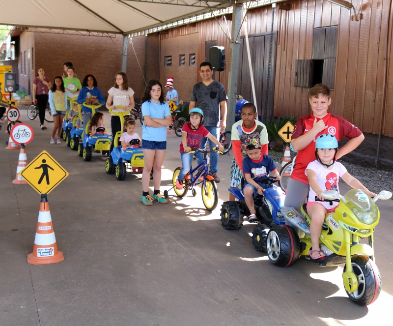 Em bicicletas, motocas, e carrinhos, os alunos também receberam orientação sobre a importância de cumprir as regras de trânsito, como o uso do cinto de segurança, respeito aos pedestres, não exceder a velocidade permitida na via, não ultrapassar em local proibido, não usar telefone celular quando estiver dirigindo, entre outras condutas.
