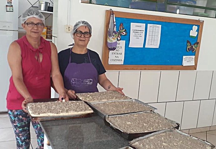 Os cogumelos foram utilizados no preparo de pizzas, estrogonofe e molhos. A SMEC e os alunos agradecem as doações e a generosidade de Luiz Fernando Scheeren e Sara Passos, da Fungi Nativos Cogumelos, pela doação do produto.