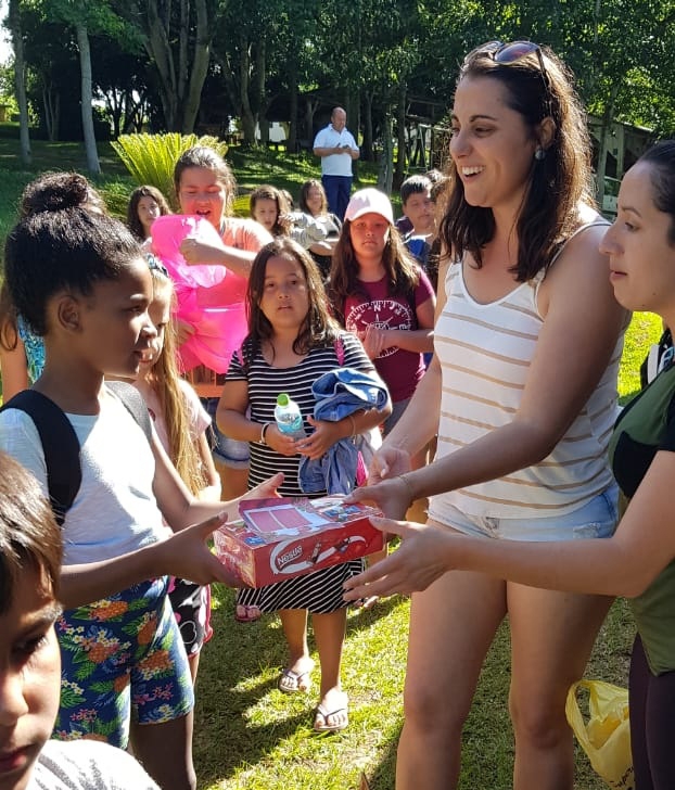 As crianças e jovens das oficinas de música participaram de atividades, brincadeiras nas piscinas e receberam caixas de bombom de presente de natal.