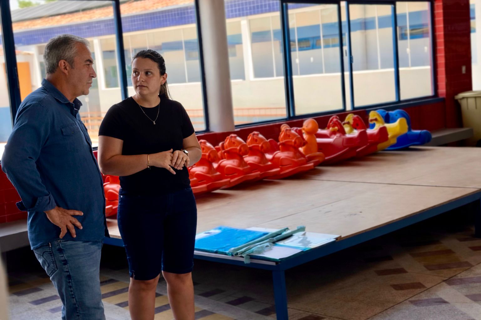 Na área da educação, foi licitado o início da construção da nova Escola Municipal de Ensino Fundamental Genny de Souza da Silva, com investimento superior a R$ 8 milhões e área aproximada de 3 mil metros quadrados, seguindo projeto padrão do Fundo Nacional de Desenvolvimento da Educação (FNDE). A escola foi atingida pela enchente de maio de 2024, no bairro Goiabeira, e a definição do novo terreno no mesmo bairro busca preservar o vínculo histórico da instituição com a comunidade local.